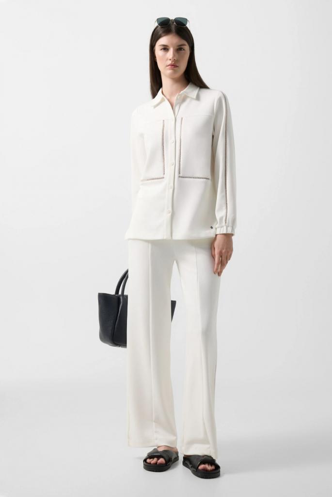 • Объемная вышивка в виде пальмовых ветвей в тон цвета основного полотна спереди