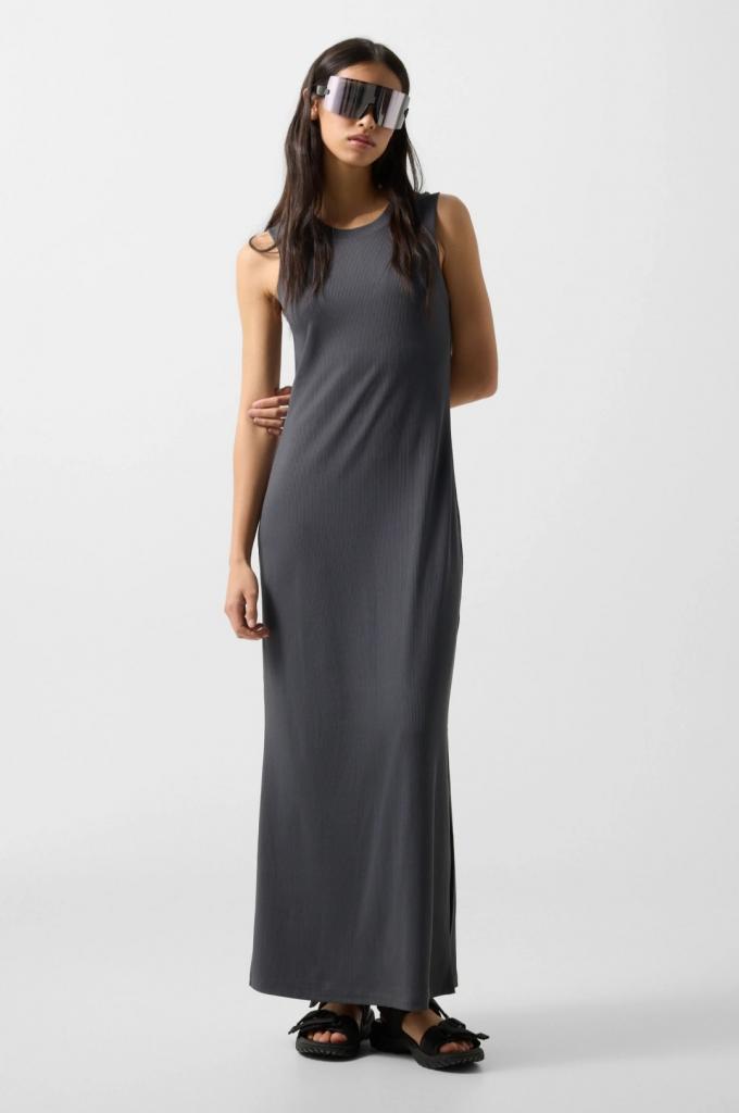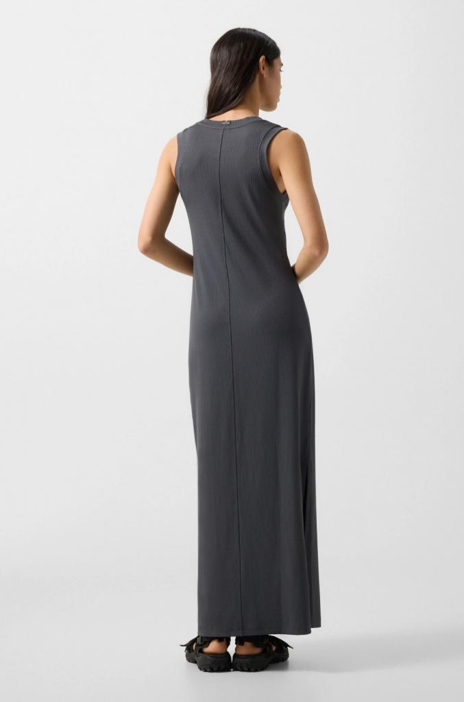Платье Eleen выполнено из легкого и эластичного трикотажа в рубчик. Модель прилегающего кроя с акцентом на талии, с круглым вырезом горловины, без рукавов. Боковые разрезы обеспечивают лёгкость при движении. Платье станет базой для повседневных образов.