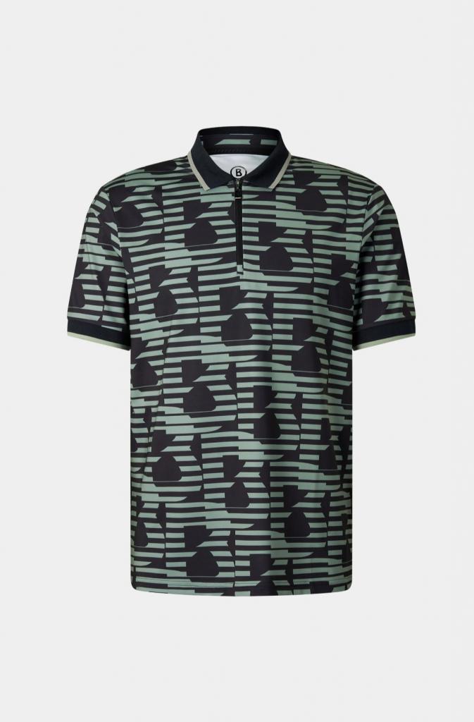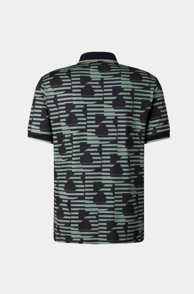 Рубашка-поло Valentin с дизайнерским принтом логотипа контрастного цвета по всему изделию выполнена из эластичной быстросохнущей и влагоотводящей ткани. Модель с отложным воротником на молнии и короткими рукавами. Эффектная рубашка-поло станет акцентом спортивных и повседневных образов.