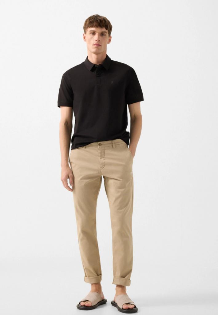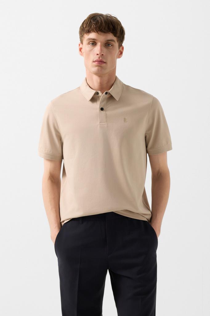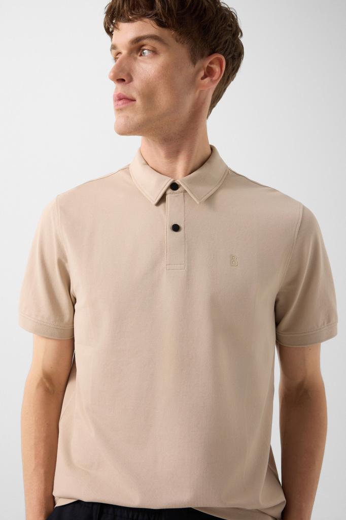 Рубашка-поло TIMO-5F цвета хаки, выполненная из смесового материала, идеально подходит для самых разных образов. Дизайн подчеркнут классическим воротником и короткой планкой с двойной строчкой на кнопках контрастного цвета. Рукава короткие. Логотип в виде буквы «В» определяет принадлежность изделия к бренду и придает модели оригинальность.