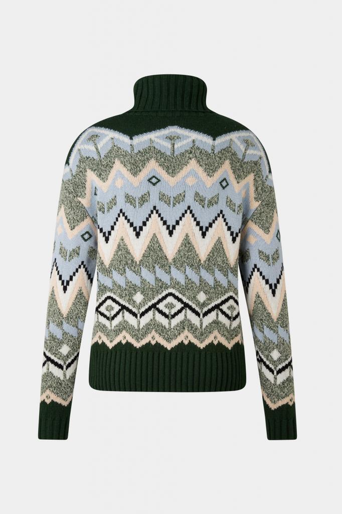 Роскошный джемпер Raegan выполнен из жаккардовой пряжи норвежского дизайна из смеси шерсти и кашемира. Высокий воротник-стойка обеспечивает комфорт, а манжеты и низ изделия выполнены в рубчик.