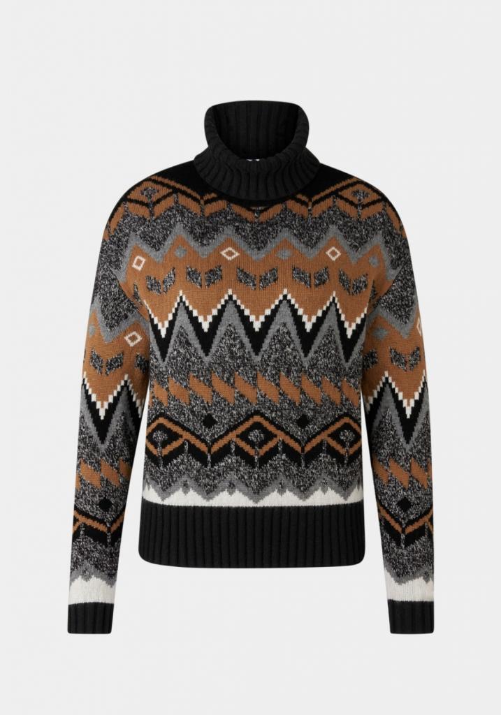 Роскошный джемпер Raegan выполнен из жаккардовой пряжи норвежского дизайна из смеси шерсти и кашемира. Высокий воротник-стойка обеспечивает комфорт, а манжеты и низ изделия выполнены в рубчик.
