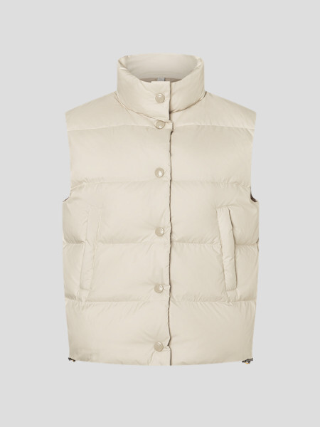 Стеганый жилет Orely выполнен из функционального материала с наполнителем из натурального утиного пуха. Дополнен воротником-стойкой и прорезными карманами. Такой стильный жилет прекрасно подходит для многослойных повседневных образов.